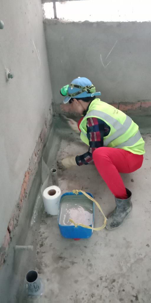 – Rải bột chống thấm lên bề mặt sàn theo đúng định mức thi công trước khi đổ lớp bê tông phủ.